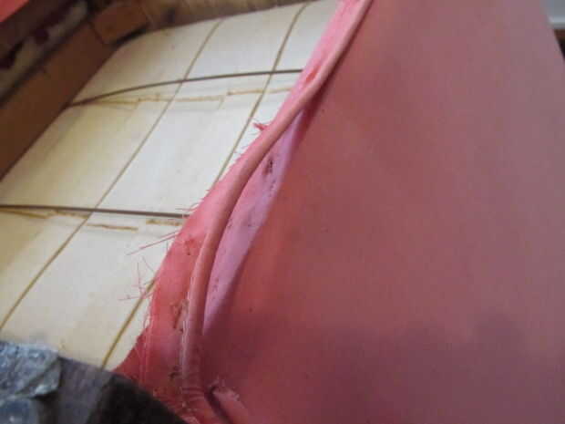 mi hermana heredó esta hermosa silla enmarcada de nuestra madre.  Ha sido retapizado por lo menos una vez antes; Recuerdo que mi madre y mi abuela trabajando en ello para aproximadamente una semana cuando tenía 8 o 9.  Hizo un tremendo lío y tomó la