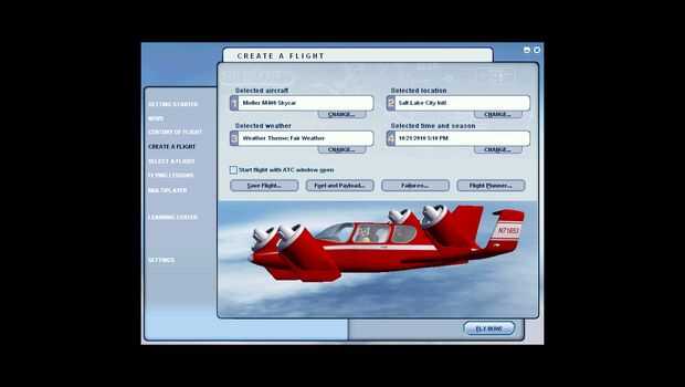 Para iniciar el simulador de vuelo, simplemente haga doble clic en el atajo de simulador de vuelo. Cuando la UI (interfaz usuario), ir a"seleccionado", en fabricante de avión ir a Boeing y bajo el modelo de avión, ir a 737-400. Haga clic en Aceptar. Vaya a"seleccionado". "País ir a Estados Unidos, bajo estado/provincia ir a Utah, debajo de"Ciudad"ir a Salt Lake City y seleccione"Salt Lake City Intl. Luego en "Posición de pista/Inicio" ir a "Puerta G 15--puerta pequeña". Haga clic en Aceptar. Luego, ir al tiempo seleccionado y vaya a "Tiempo tema: Feria de tiempo". Haga clic en Aceptar. Y, finalmente, ir a "Seleccionar tiempo y temporada" y elegir el momento en que quieres volar. Haga clic en aceptar, luego haga clic en "Volar ahora!".