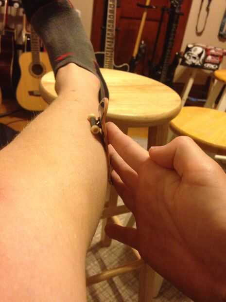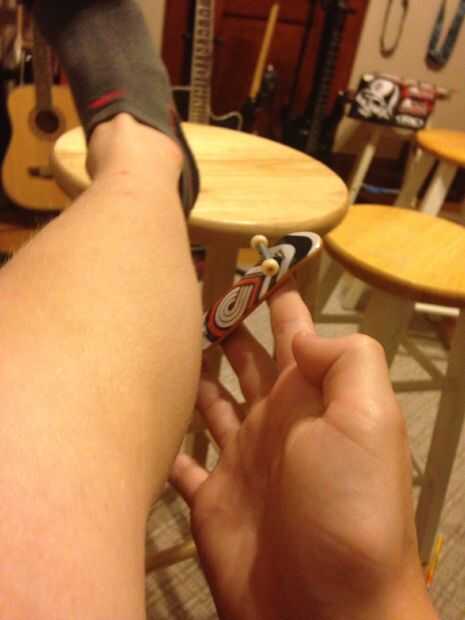 Una gran manera de aprender un ollie es practicar en el lado de la pierna. Como la foto siguiente.