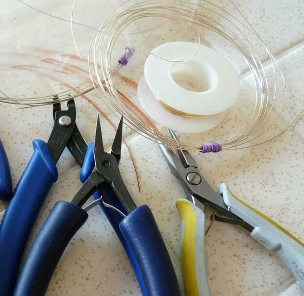 Alambre: Puede utilizar cualquier tipo de alambre de metal no tóxico, aunque prefiero por calidad de joyería de alambre en línea. Escultura de alambre y Río Grande son excelentes fuentes. Si estás empezando, te recomiendo cobre o bronce. Son baratos y se ven muy bien con pulimento o pátina.