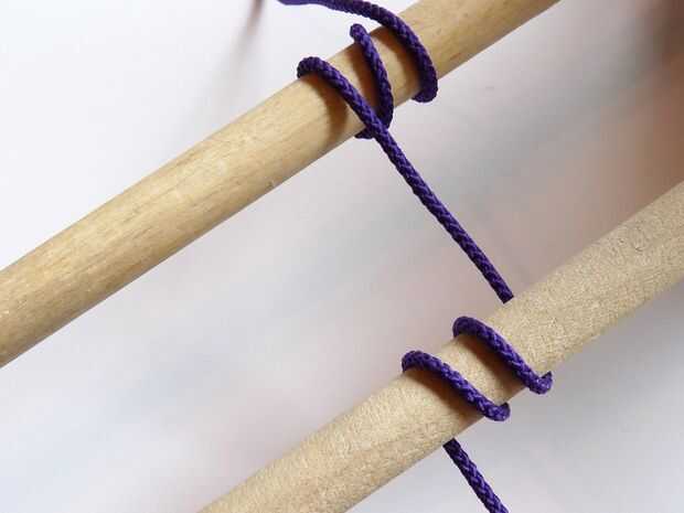 Mantenga los cables base aparte y paralelo con los dedos. Ahora llevar el hilo que teje en el alambre base opuesto.