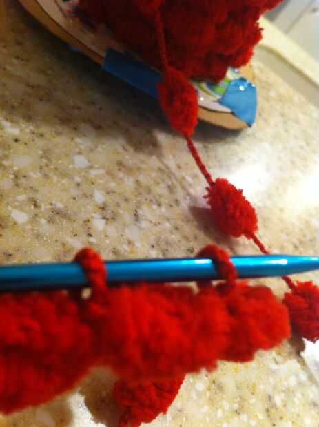 Tomar la hebra próxima donde no hay codigo postal pompones y girar y poner en la aguja.