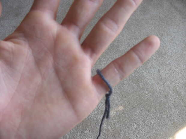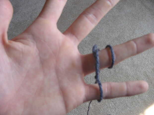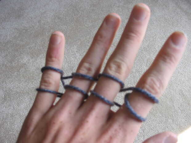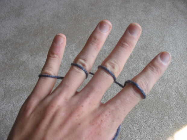 a continuación, deslice el lazo que sólo has hecho sobre tu dedo meñique. Wined el hilo en su dedo anular y alrededor. lo mismo para el resto de los dedos en el índice. Repetir este proceso comenzando con el dedo índice y terminando con su poco.
