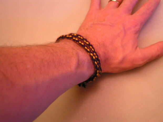Si el cable va a ser una pulsera o correa de cuello, luego doble-ata el nudo acabado. Entonces puede enroscarse por el lazo de inicio como una simple captura.