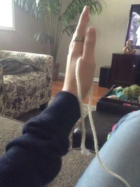cómo hacer una manta fuera del solo hilado y sus dedos!Paso 1: Tejer dedos Para iniciar, sostener el hilado seleccionado en la mano con el pulgar como se muestra en la primera foto.Tejer el hilado, encima y por debajo, los otros 4 dedos como las sigu