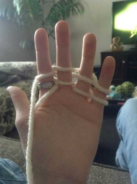 cómo hacer una manta fuera del solo hilado y sus dedos!Paso 1: Tejer dedos Para iniciar, sostener el hilado seleccionado en la mano con el pulgar como se muestra en la primera foto.Tejer el hilado, encima y por debajo, los otros 4 dedos como las sigu