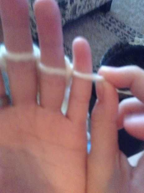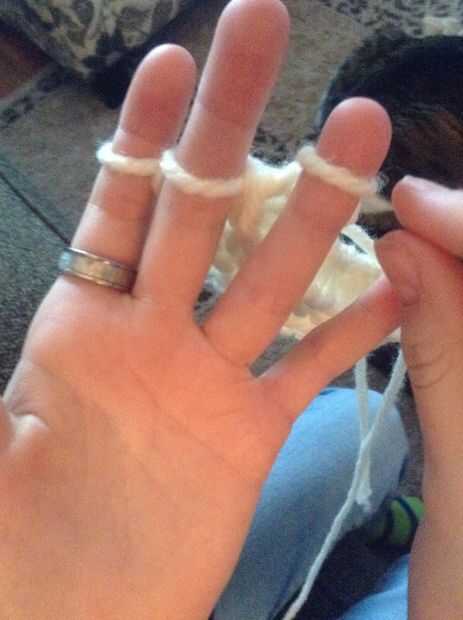 cómo hacer una manta fuera del solo hilado y sus dedos!Paso 1: Tejer dedos Para iniciar, sostener el hilado seleccionado en la mano con el pulgar como se muestra en la primera foto.Tejer el hilado, encima y por debajo, los otros 4 dedos como las sigu