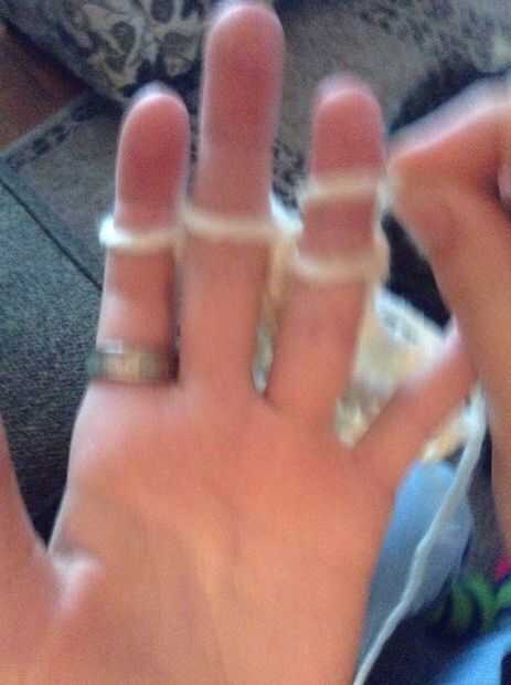 When your done, you have to cast off. Para hacer esto, no agregue otra fila, pero sacar la cadena de pinky y moverlo sobre el dedo anular. Luego deslice el dedo anular apagado. Seguir haciendo esto y le a hecho! Compruebe hacia fuera mi otro tutorial para pura dedo (para hacer un swatch) thnks!!!