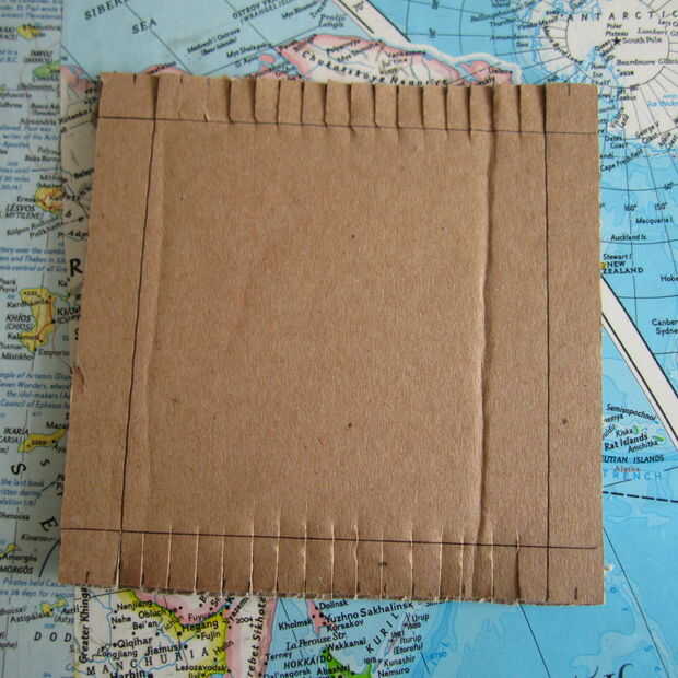 Ahora, a trazar las líneas para las muescas! En la mayoría de los casos desea a ser 1/4 pulgada aparte. Sin embargo, usted puede hacerlos tan grandes como quieras. Cuanto mayor sean más fácil tejer será. :)