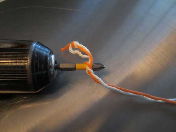 Conecte el otro extremo a algo que gira en forma controlada. Aquí estoy usando un taladro inalámbrico pero un mezclador de mano o la toma de fuerza de un tractor trabajaría demasiado.