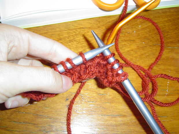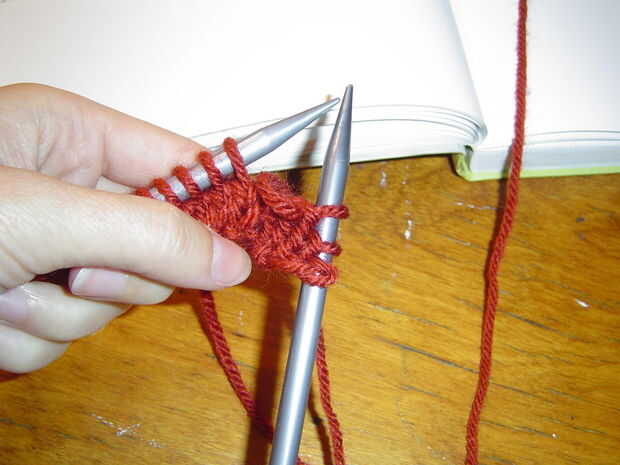 Punto cuidadosamente los siguientes dos puntos en la aguja izquierda.