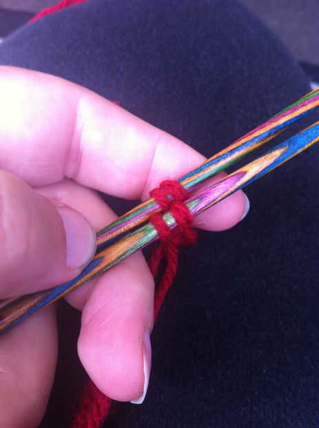 K1 delante y detrás, K1 frente y parte posterior, (turno a la aguja de segunda) K1 delante y detrás, K1 frente y dorso, (ahora tendrá 4 puntos en cada aguja)