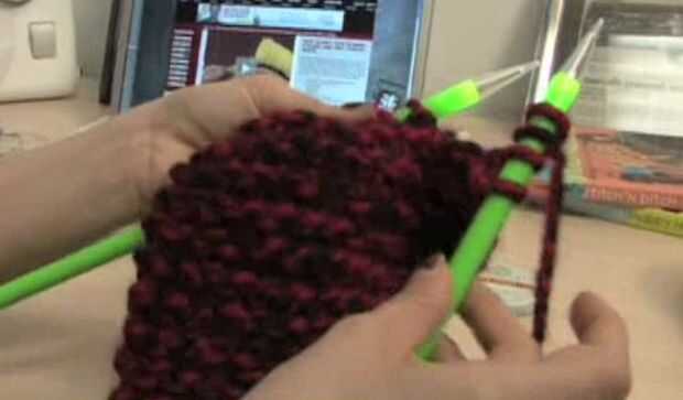 Regularmente hasta llegar a la segunda brecha y añadir dos más lazos sobre la aguja de punto.