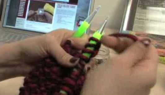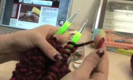 Así, tejer los dos primeros puntos, luego con su dedo crear dos bucles más Dónde está la diferencia.
