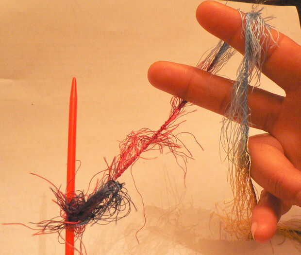 Paso 5: Ahora Repita este proceso hasta lograr el ancho deseado de la bufanda, para este modelo particular que utilicé 20 bucles cual debe este aspecto cuando termine.