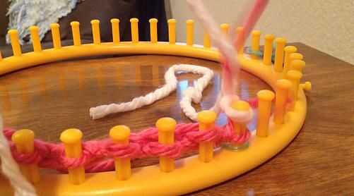 Intento evitar telar tejer un proyecto en un solo color. Mi TDAH, simplemente no me deja, aunque lo he hecho. Se decide qué colores van de la mano bien, y lo utilizo 2 o 3 colores dependiendo de lo que estoy haciendo. Con mi vestido y pantalones patrones que sólo necesita decir 3 – 6 clavijas en el telar y aprendí a cambiar el color de la primera y la última clavija. Así cada vez que detener y revertir no necesita contar las clavijas. Usted puede comprar clavijas de repuesto en Amazon.com por un precio barato, así que mi amigo me dijo que hiciera eso en vez de arruinar mis telares perfectamente buenas. Usé mi pistola de pegamento para asegurarse de que permanecería en estado sólido. Realmente funciona muy bien.