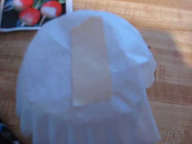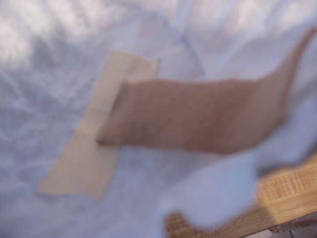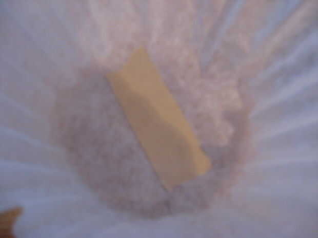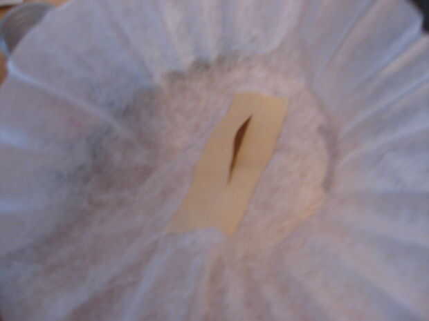 Fotos 7,8 y 9 - cortar una hendidura en la cinta 1 1/2 pulgadas de largo e introduzca el fieltro en la ranura. Han sentido un poco sobresaliendo sobre el filtro.