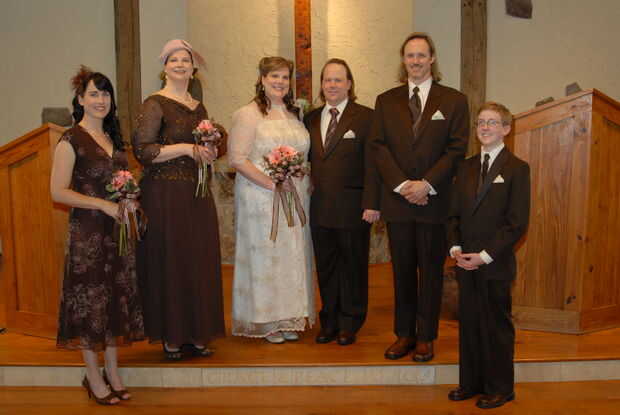 El clásico seguía siendo hombres con sombreros de taxista.  El novio llevaba tirantes y el padrino llevaba chalecos.  Para el servicio... los chicos vestían chaquetas como respeto a la Iglesia pero después del servicio... salieron de las chaquetas y permanecieron casuales a través de la recepción. Nos dieron los chicos relojes de bolsillo como sus regalos a los años 40 ver década.