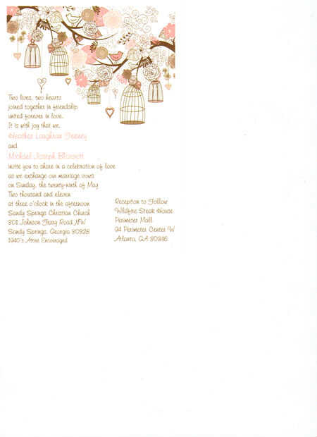 Invitaciones: Fueron comprados fuera de eBay y fue descrito como invitaciones de boda personalizadas. Incluye 100 invitaciones y tarjetas de respuesta. Eran también lo suficientemente dulces para dejarnos ordenar más adelante notas de agradecimiento en el estilo de nuestras invitaciones.