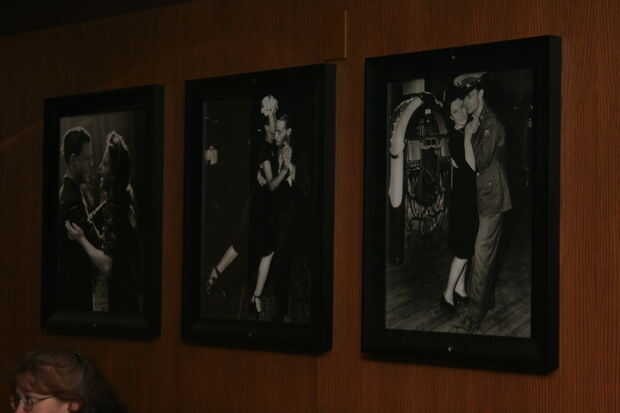 he buscado y encontrado un lugar que era un lugar comedor que se comercializa como un "club de cena de 1940" pensé que esto era perfecto para una recepción para una boda pequeña de la década de 1940. Sus banquetes eran perfectos con una decoración de estilo de la década de 1940 y fotografías que rodean la sala, y su música era década de 1940 que parte fue atendida también.