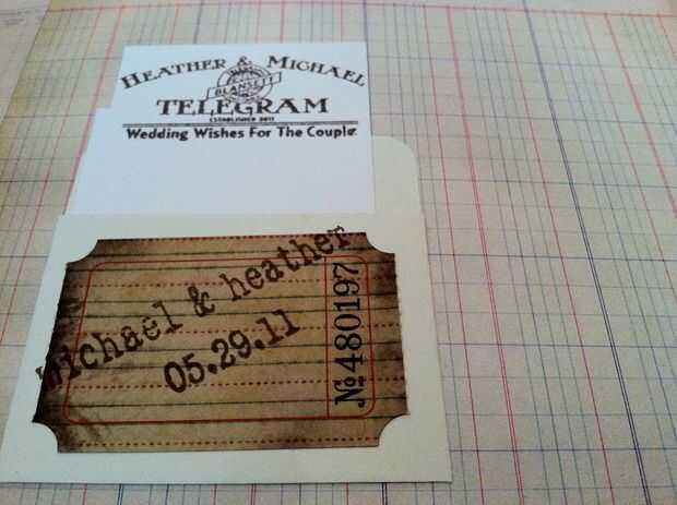 Después de la boda poner las tarjetas en los bolsillos de la biblioteca y otra vez había estampado con un sello especial reconociendo la fecha y el bolsillo y la tarjeta en papel ledger de scrapbook. Luego añadí la imagen de huésped con la boda con página especial en mi Bloc de notas, lo que para un recuerdo del maravilloso libro de visitas con una llamarada 40 maravillosa que.