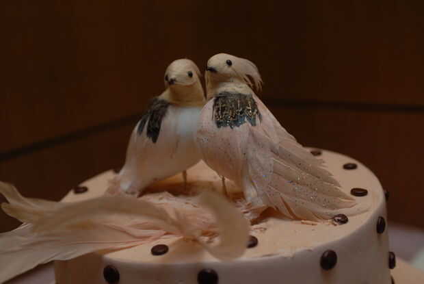 TORTA: Adquirimos nuestro pastel a través de Publix... tenían los mejores precios para el número de invitados que tuvimos. Queríamos un look sencillo pero elegante. Tengo que decir que fue el mejor pastel de bodas que nunca habíamos probado... y nosotros no estamos siendo parcial. Hemos comprado un conjunto de dos "vintage" amor aves primeros de la torta que pasó a ser nuestros colores marrón y rosas de la internet para rematar el look. Publix tiene incluso esta linda idea de un mini pastel de boda que hemos añadido a nuestro pastel para ser guardado y utilizado como nuestra torta para disfrutar en nuestro primer aniversario. Tener un mini pastel fue la mejor manera de perder entonces un top todo más tarde que podía ser disfrutado por los huéspedes. Ellos también sugirieron un tupperware hermético tipo envase para almacenar en que se congela, por lo que podrán degustar fresca un año a partir de ahora. Confía en mí congelador tarta quemada es verdaderamente desagradable.