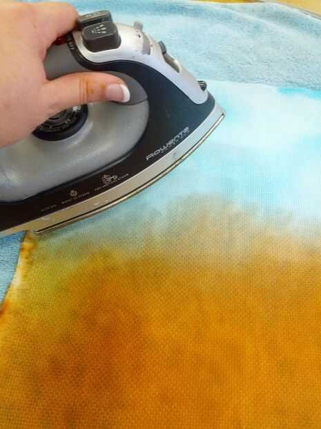 Poner una toalla o toallas de papel hacia abajo sobre la tabla de planchado - los colores sangrarán en la cubierta de tabla de planchar.