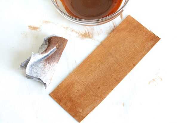 La segunda foto muestra la diferencia entre aplicar el tinte secando (derecha) y aplicar el tinte después de engrasar ligeramente el cuero (izquierda). Puedes ver que el de la derecha tiene muchas zonas donde la cobertura es irregular y la luz.