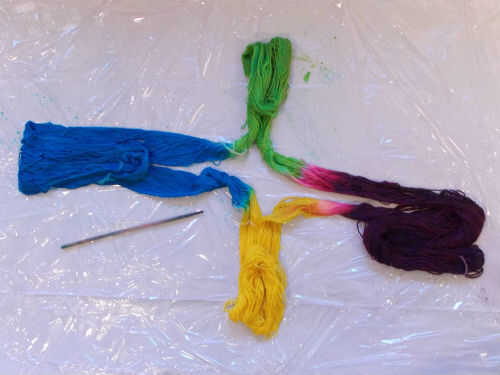 Se pueden ver el completo paso a paso las instrucciones para teñir el hilo y fijar los tintes en miCómo mano pintura hilo Tutorial.