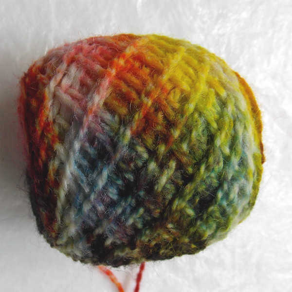 Parte de la lana es realmente muy bonita con un moteado amarillo, naranja y verde. También hay un montón de blanco ya que el colorante no penetró hasta el centro.
