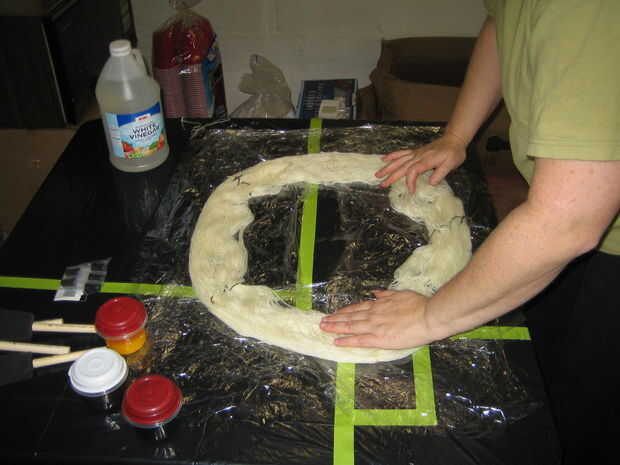 Extienda el hilo en la envoltura de plástico. Trate de repartidos por lo tanto es visible como sea posible, no mounded para arriba.