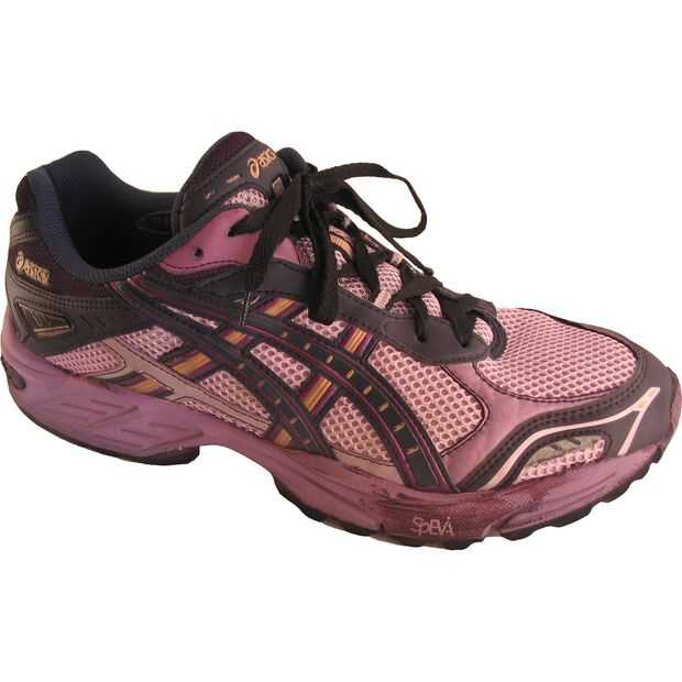 Estas zapatillas Asics Gel Foundation 7 son realmente confortables y ofrecen "máxima motion control" para mis pies planos y overpronation. Por desgracia, sólo vienen en un juego de colores: con reflejos de aburrido y feo más feo. Así que, harto de zapatillas blancas, había teñido mina púrpura.
