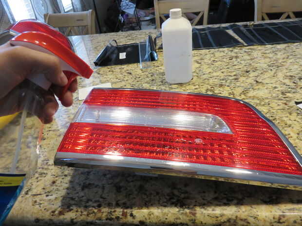 La misma razón que Windex es muy bueno utilizar es también su talón de Aquiles. Puesto que el Windex contiene alcohol, se seca más rápidamente que con agua y jabón y permitir que el tinte se adhiera a la luz. Sin embargo, el alcohol comienza a corroer el adhesivo si usted toma demasiado tiempo. Esto aparecerá como poco especificaciones de goo agrupado para arriba.