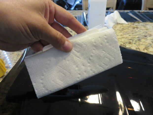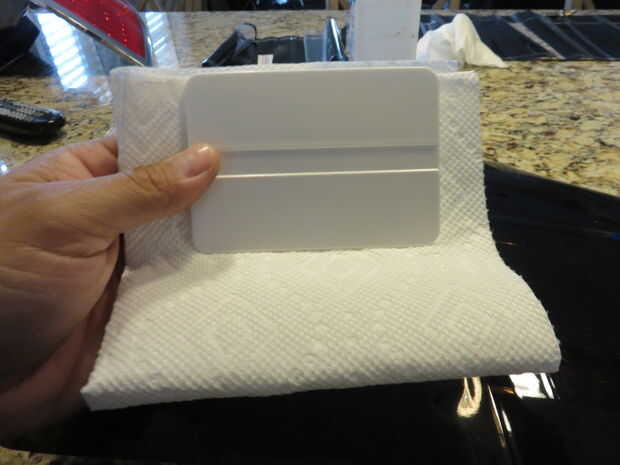 Mantenga una toalla de papel húmeda windex sobre la escobilla de goma para evitar rayar a través de la aplicación.