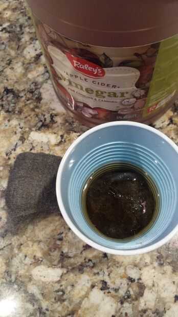 1. en primer lugar, creará un oscuro tinte negro con un vaso lleno de vinagre mitad un rollo de lana de acero. Sólo desgarrar la lana y sumergirse totalmente en el vinagre. Estoy usando vinagre de manzana porque me gusta el color.