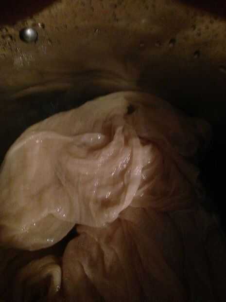 Una vez hemos añadido nuestra seda, lo dejamos cocer a fuego lento aproximadamente una hora y luego apague la estufa y lo deje reposar toda la noche. Esto es para permitir que el alumbre enlazar el hecho con la tela.