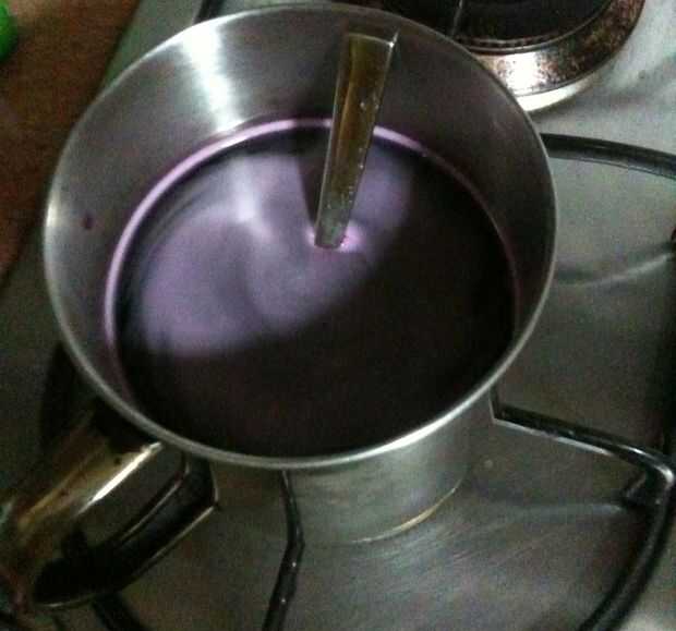 Remover para disolver el tinte. Llevar el agua a fuego lento y no hirviendo antes de agregar las cosas. Si comienza a vapor, apague la estufa.