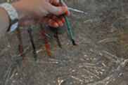 Sunpainting con pinturas de sol de setacolour de Peboe es una divertida forma de decorar la tela.Descubierto en los mares del sur, la técnica consiste en pintar a la tela y luego cubrirla con material vegetal y otros objetos. Una vez seco los objeto