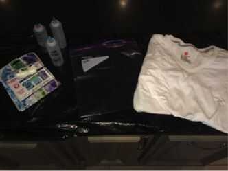 Compro tamaño medio gomas, un kit básico Tie-Dye (CreateBasicsKit de Wal-Mart es un buen kit para usar), un blanco de algodón camiseta bolsas Ziploc de un galón de congelador, bolsas de basura grandes,.26 oz botellas de squirt, un par de guantes látex (opcionales) y colorante (puede encontrar en el kit de Tie-Dye).