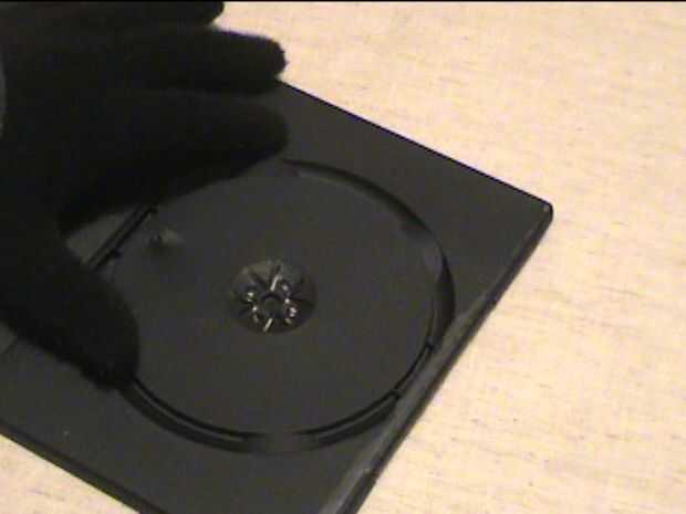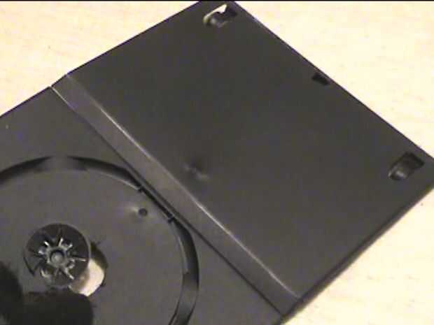Paso 2 - abrir el DVD caso y con su cuchilla corta el área que contiene el disco en su lugar.