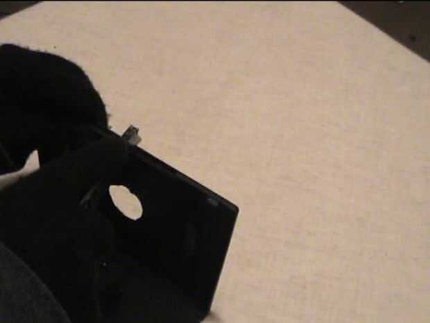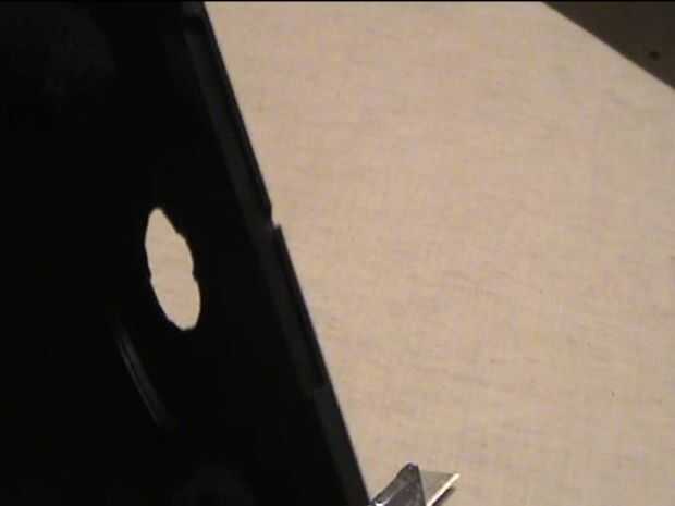 Paso 3 - con esa misma hoja, cortar un pedazo pequeño del lado de la caja de DVD,