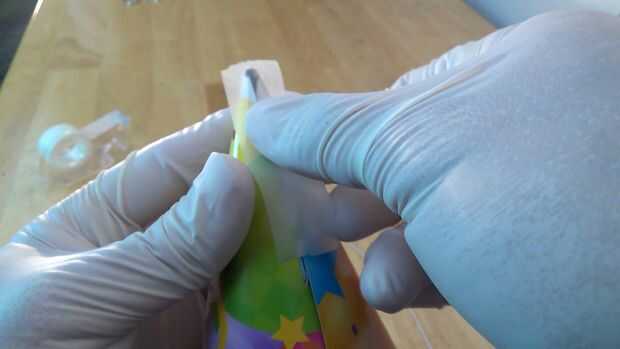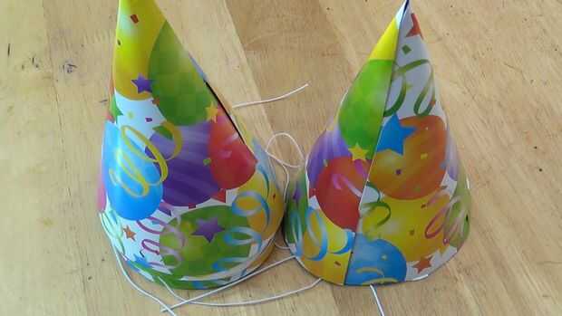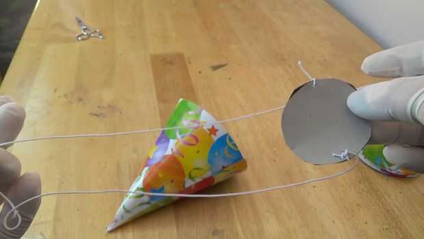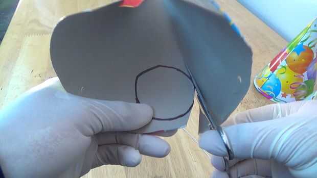 Undo the other party hat and cut off a small circle from it, about an inch in diameter.