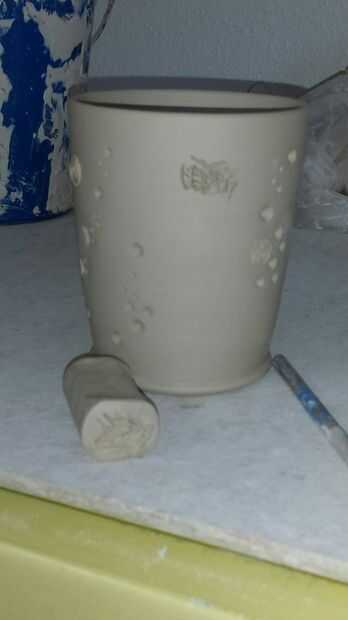 Asegure la parte superior de la manija de la zona deslizada y anotada del cilindro. Dar el mango un empuje suave pero firme con la mano en el interior de la taza para apoyar al otro lado de la pared. Entonces use un dedo índice alrededor de los bordes del accesorio más sellar las dos piezas juntas. Un poco de agua adicional en su dedo para alisar la costura funciona bien, o puedes probar con un pequeño pincel con un poco de agua en él para suavizar la zona una vez que correctamente ha presionado y selladas juntas las dos áreas.