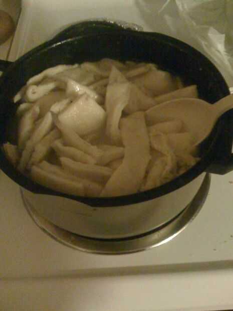 El plato preferido de nuestra fiesta fue pollo y bolas de masa hervida (aunque algunos piensan que esta clase particular es más parecido a los tallarines) - con una receta de un libro de cocina que Noé probablemente guardado en el Arca (tenía instrucciones para desplumar el pollo - seriamente.)