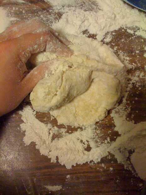 Mantener la perforación, balanceo y agregar pizcas de harina según sea necesario - y hasta que la masa tenga una consistencia agradable. Algunas personas no están seguros de lo que es, pero seguir trabajando hasta que es agradable y sólido para el corte. Debe ser capaz de decir cuando llegue allí.