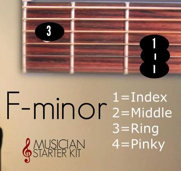 Los tres 1 en el primer traste indican que le barra la parte superior tres cuerdas con el dedo índice. Para ello, el dedo índice se encuentran en las cuerdas y presione firmemente.