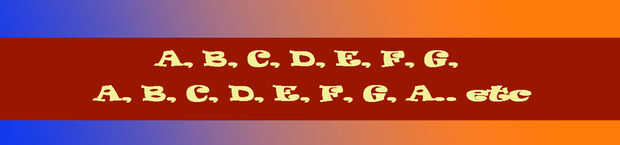 El alfabeto de la música es probablemente el más fácil de dominar en esta lista. El alfabeto de la música es de la letra A la letra G y luego se repite. Así, usted empieza a decir el alfabeto... A, B, C, D, E, F, G, parar!!! Es lo que tienes que ir! Música no utiliza notas después de G. ¿Qué letra es después de G? Bueno A por supuesto! Así que el alfabeto de la música se vería como: A, B, C, D, E, F, G, A, B, C, D, E, F, G, A, etc.