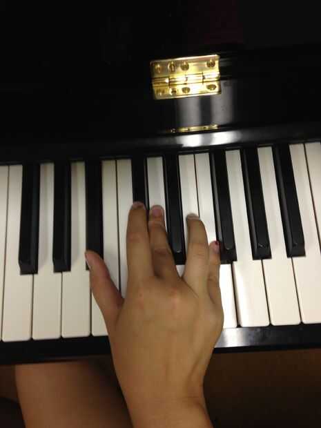 Para poder jugar el acorde Bb tu meñique izquierdo (dedo 1) debe colocarse en A #, medio (3er dedo) en D(2) y el pulgar (5 dedos) en F(4). Para la mano derecha, comienza con el pulgar (1) en A #, seguido por su medio en D(2) y pinky en F (4).