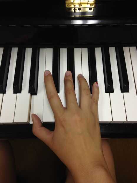 Por último pero no menos importante... B principales! Su digitación mano izquierda será como sigue: el primer dedo (meñique) en B(7), tercer dedo (medio) en D # y el quinto dedo (pulgar) en F #. Para mano derecha B mayor se toca con el pulgar (1) en B(7), dedo medio (3) en D # y el meñique (5 º) en F #.