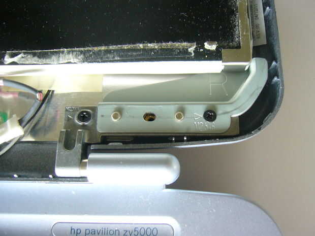 A continuación, desenrosque los bisagra lado apoyo / (ver fotos) tornillos (2). Esto separa la pantalla de la luneta trasera para el siguiente paso.